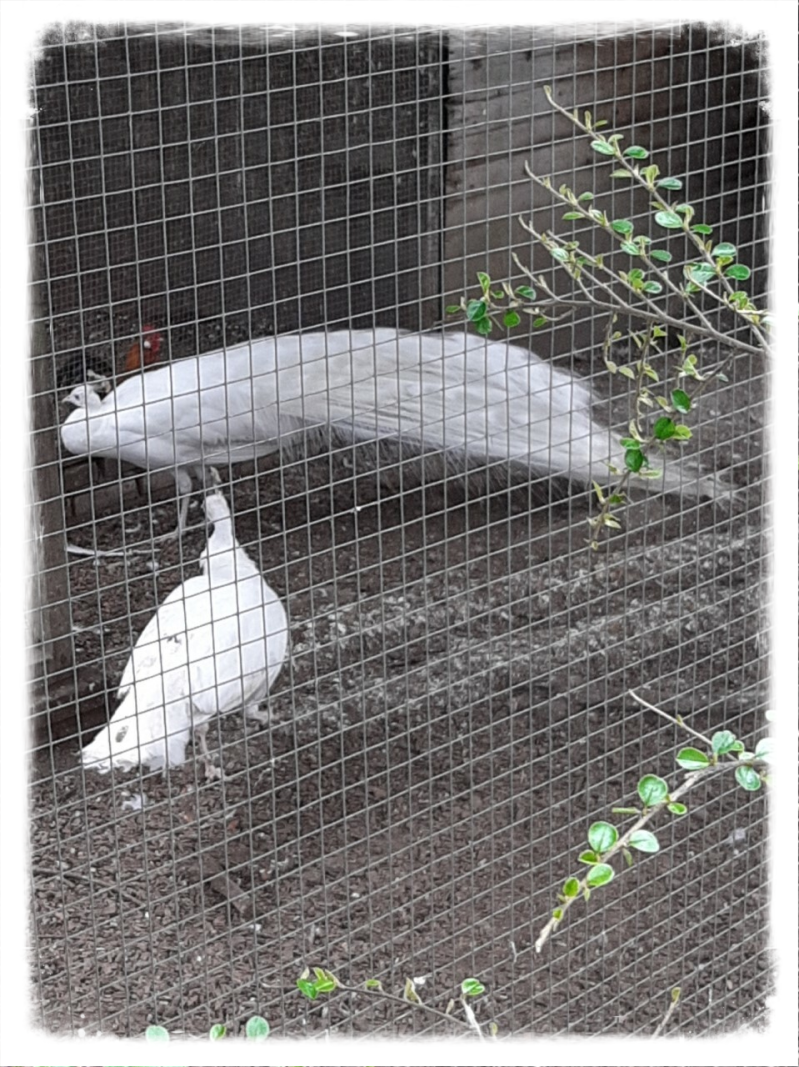 Het is verbazingwekkend om een witte pauw te zien, maar bij deze vogel ga je toch nog eens iets beter kijken. In plaats van de roze ogen die je zou verwachten, kijkt hij je aan met de donkere glinsterende ogen die je bij iedere normale pauw zou aantreffen.